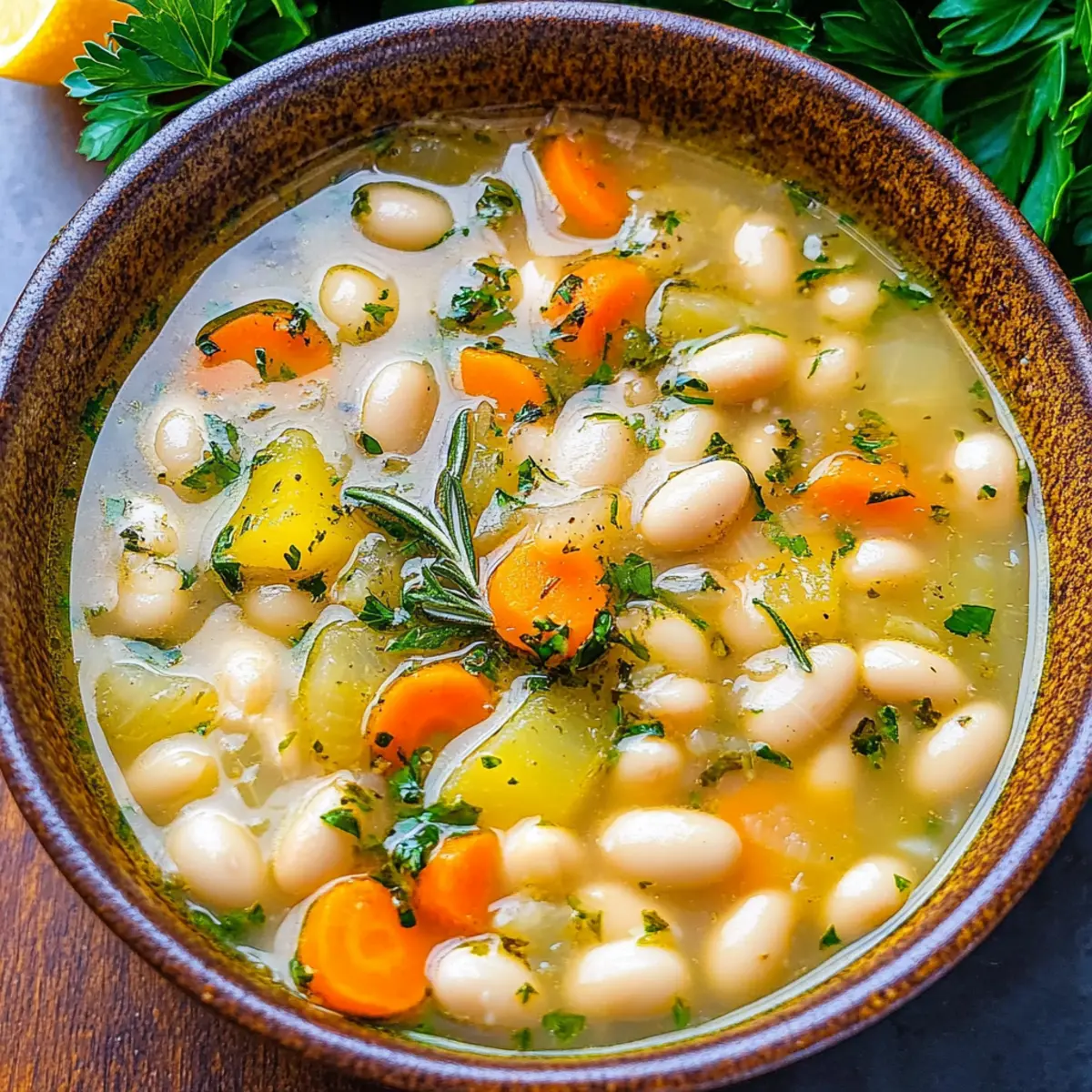 Fresh Ingredients: With fresh herbs and wholesome beans, this soup bursts with flavor. The delightful combination of rosemary and lemon brightens each spoonful, catering to those seeking a nourishing yet satisfying meal.